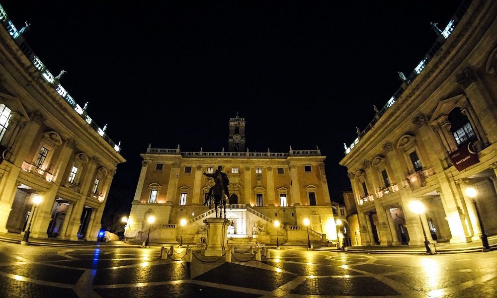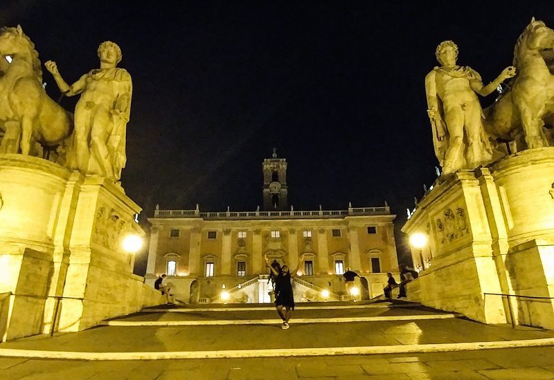 That decision brought us to several different ruins, up beside Palatine Hill which has a completely different feel at night. We came up to Capitoline Hill, which is the smallest of the seven hills of Rome and is the political and religious heart of the city.