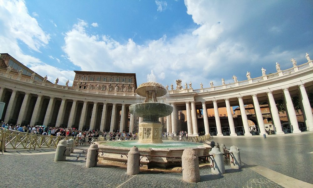 The entire square, just like everywhere else in Rome was beautiful. There is a big lovely fountain in the middle of the square and the colonnade that is made up of 284 large columns and 88 pilasters surrounding it. It is a beautiful sight to see.