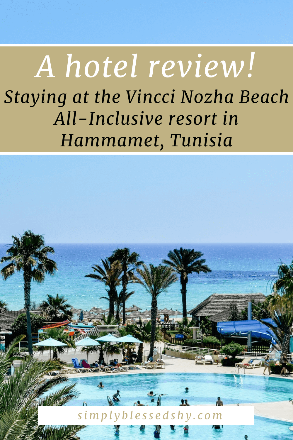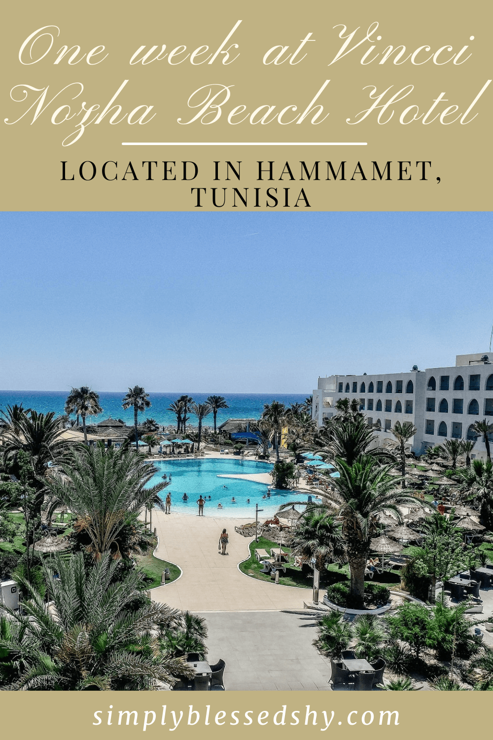 Come take a look at the beautiful Vincci Nozha Beach Hotel in Hammamet, Tunisia. This is an all-inclusive 4-star resort complete with 447 rooms, 3 pools, 3 restaurants, and a spa with a hammam among other things!